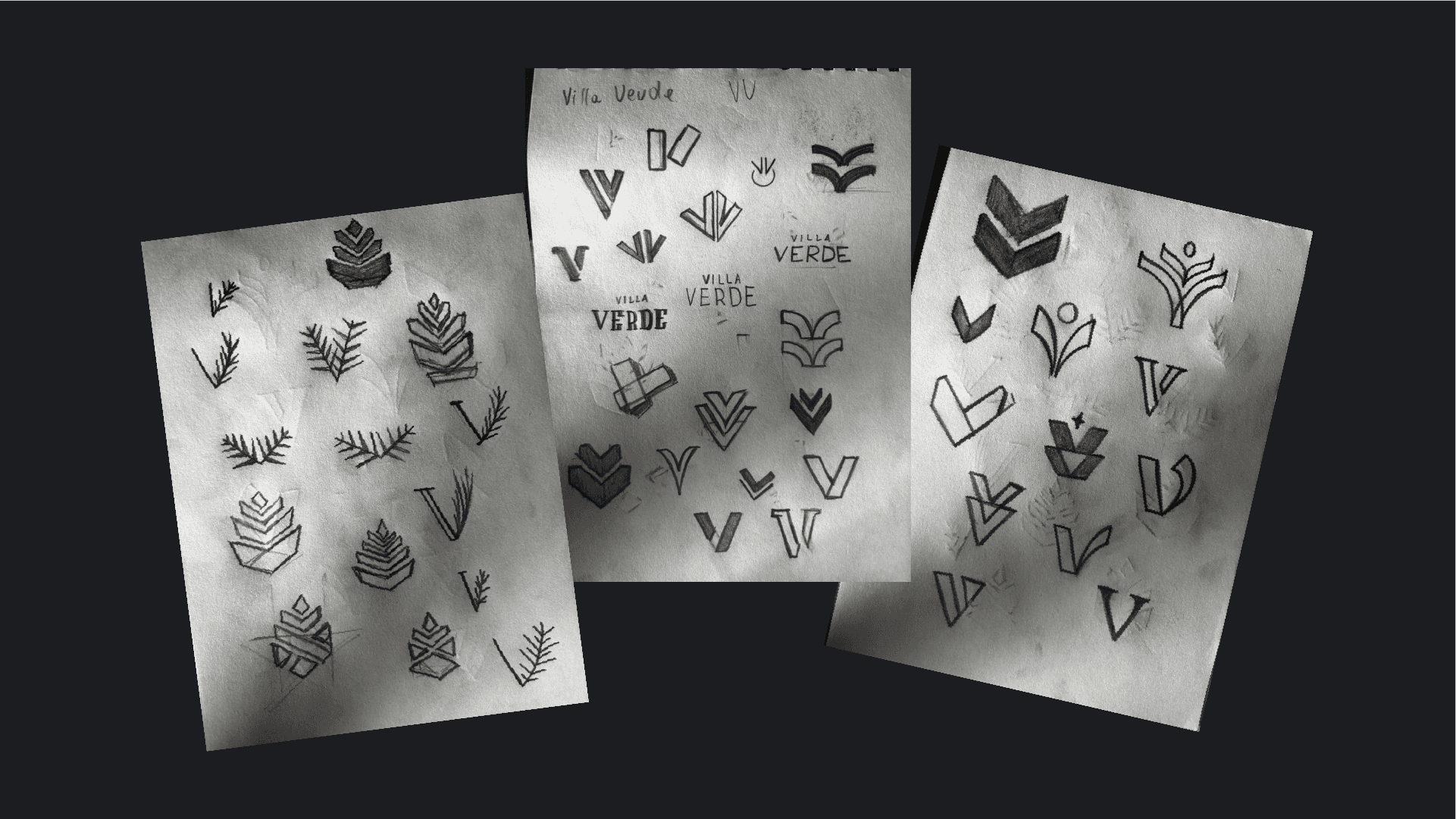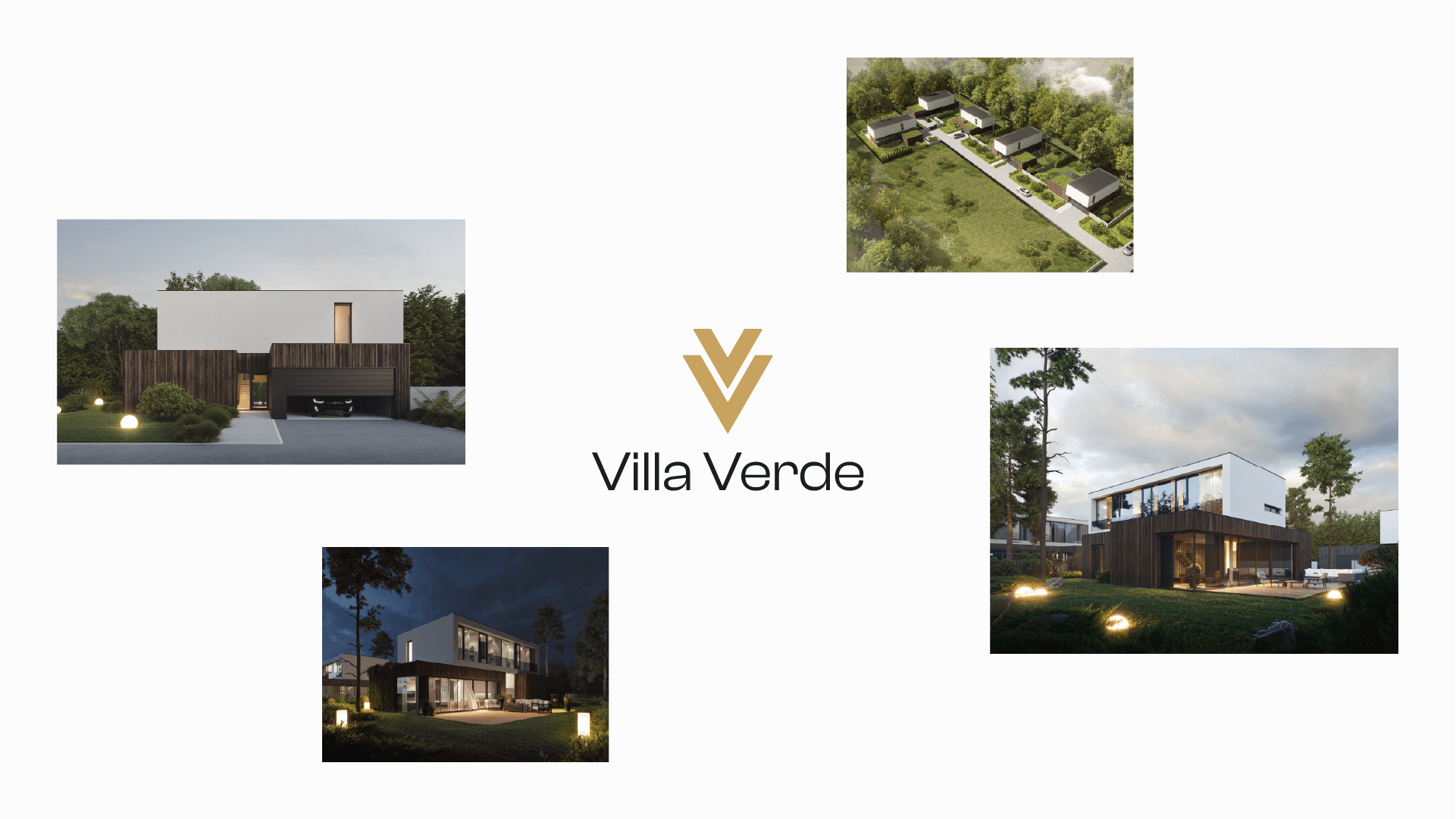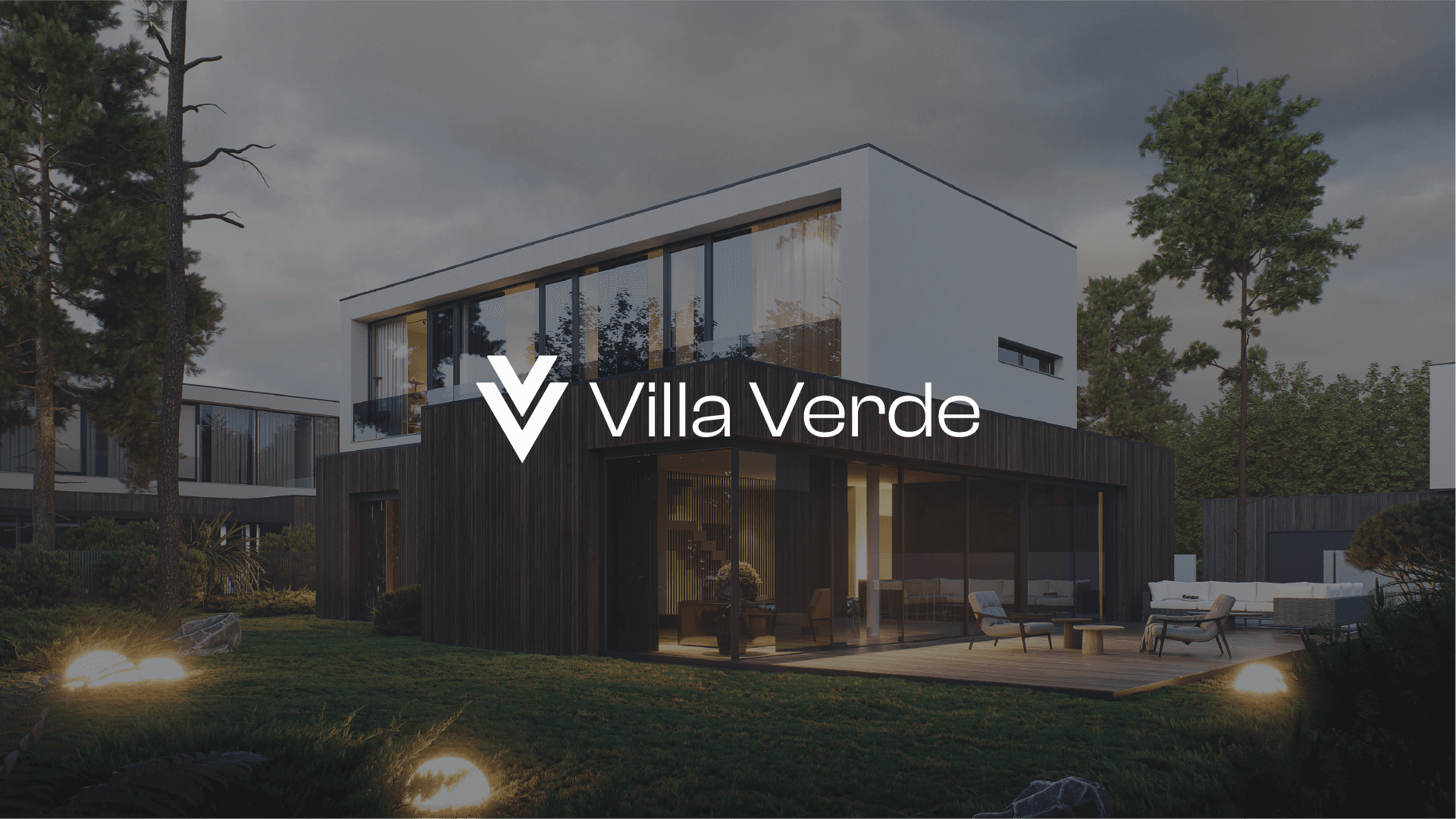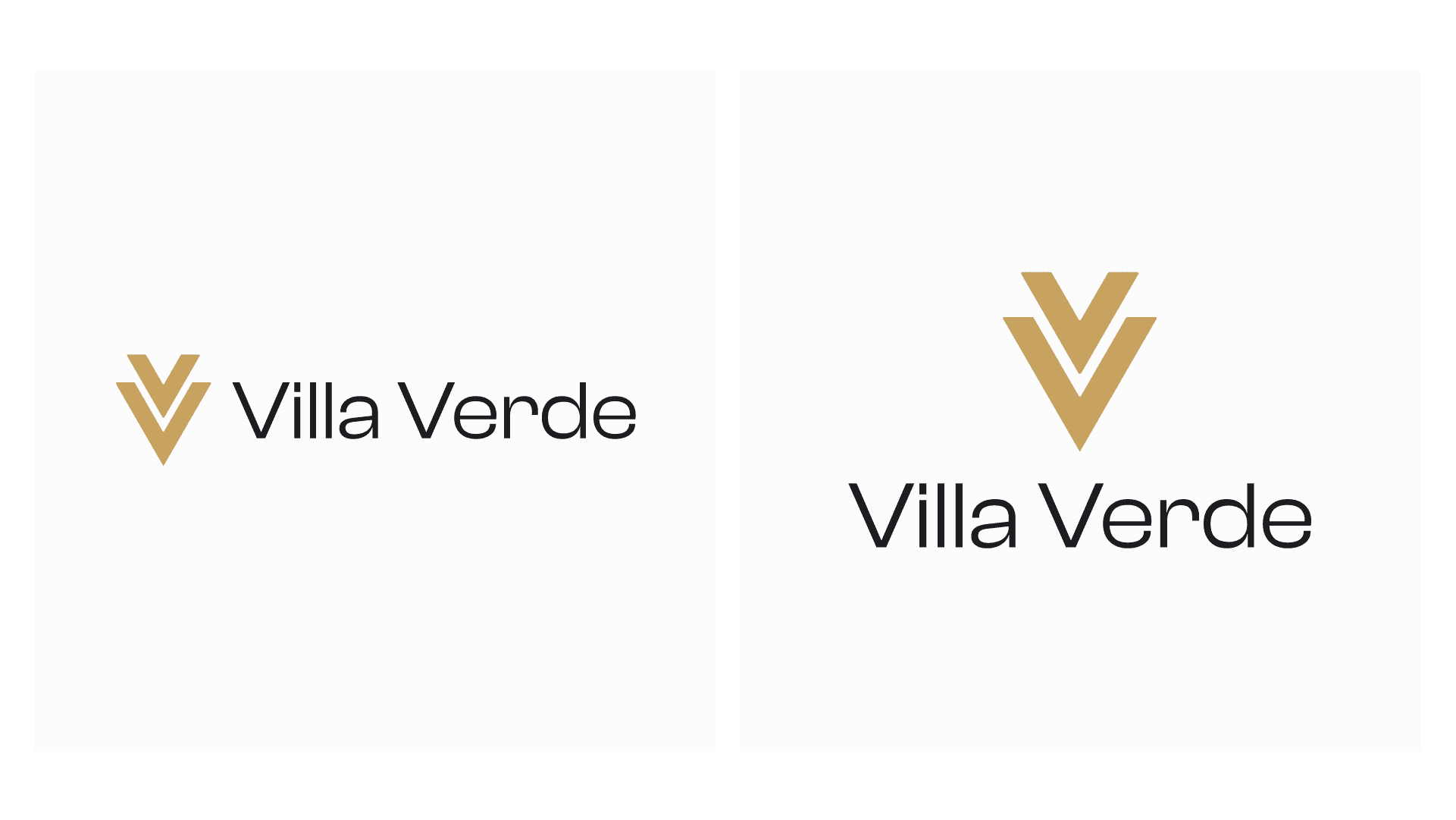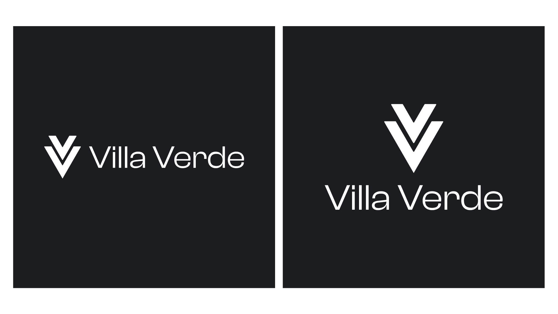 Logo dla Villa Verde. Pięć domów jednorodzinnych w Woli Justowskiej i znak który miał oddać ich charakter. Dwie litery V zamknięte w prostą minimalistyczną formę kojarzącą się z nowoczesną architekturą.
